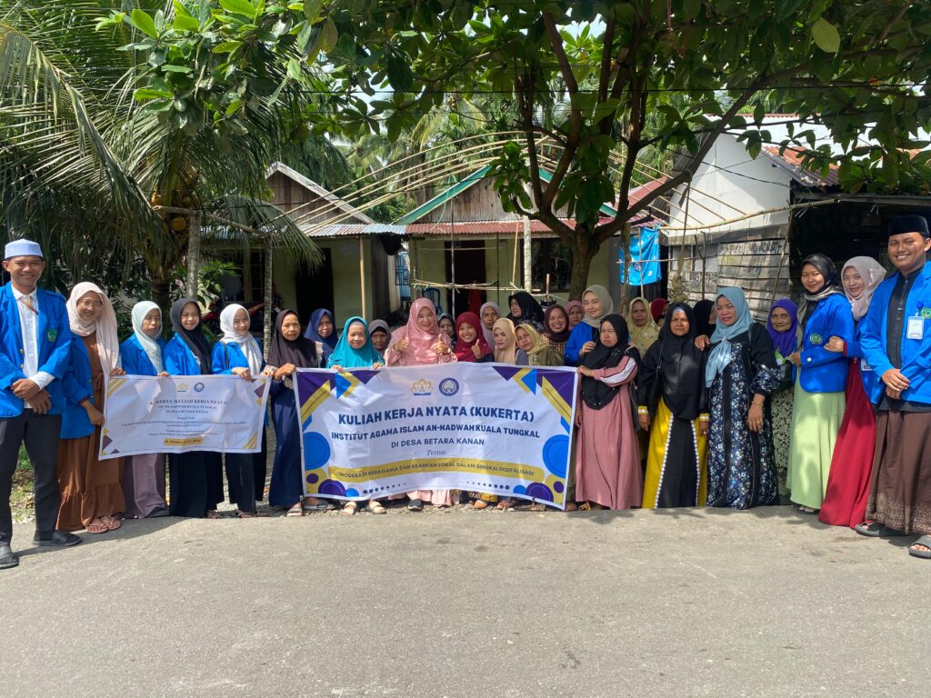 Jumat, 14 November 2025, Mahasiswa KUKERTA IAI AN-NADWAH Kuala Tungkal tepatnya di Posko 03 Desa Betara Kanan melaksanakan Program Kerja (Proker) mahasiswa Prodi Hukum Keluarga Islam (HKI) dan Hukum Tata Negara (HTN) dengan mengusung tema “Kolaborasi Penyuluhan Moderasi dan Kebangsaan di Era Digital serta Keluarga Harmoni di Era Digital.” Kegiatan ini berlangsung di kediaman salah seorang warga setempat, menghadirkan suasana yang hangat selepas yasinan ibu-ibu setempat dan di hadiri beberapa tokoh agama.